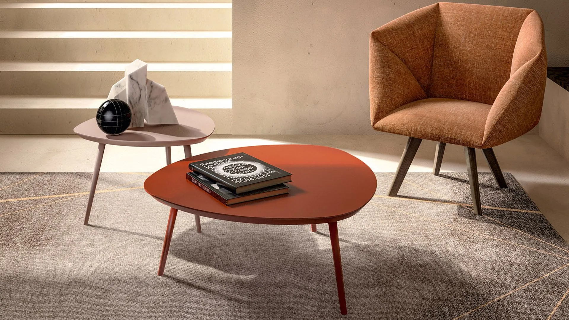 La finitura laccata opaco nei colori disponibili a campionario, permette di optare per soluzioni davvero creative, soprattutto se si desidera coordinare il divano con un paio di tavolini, magari con differenti misure. Gocce è disponibile in tre diverse misure, con ripiano da 45, 60 e 90 cm.