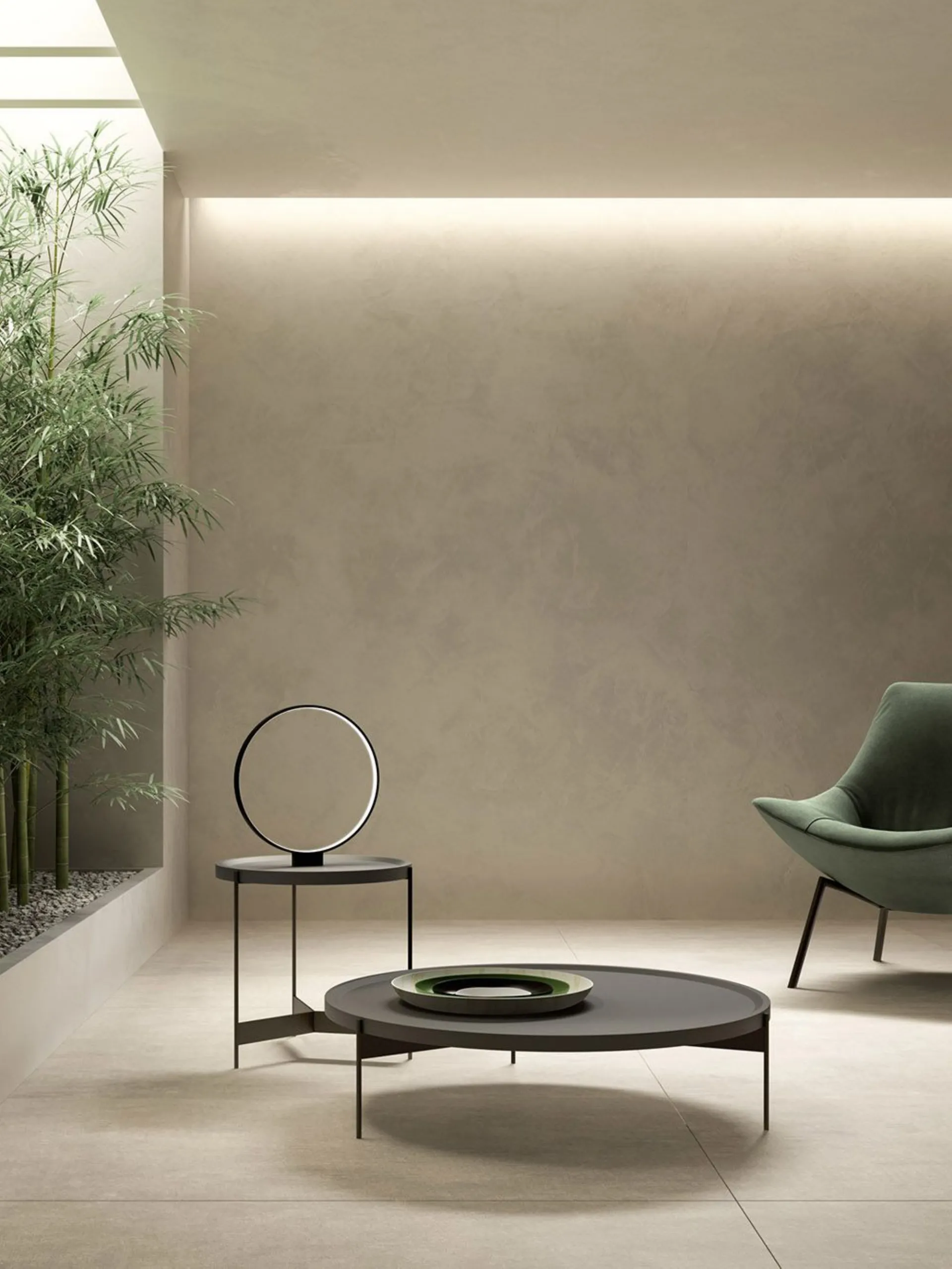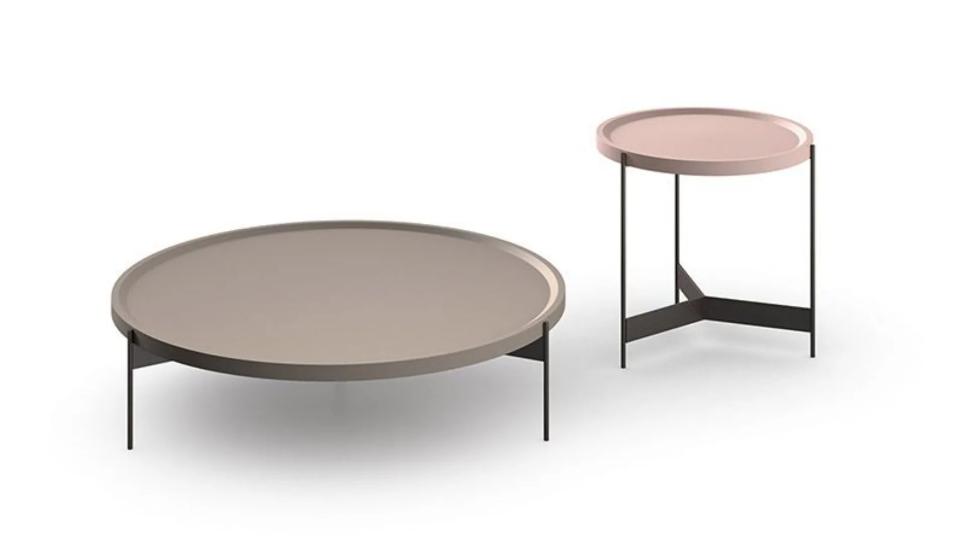 Il tavolino disponibile in due misure, unisce un design minimale e moderno con la praticità di un piano rotondo caratterizzato da un elegante svasatura che ne delinea i bordi.