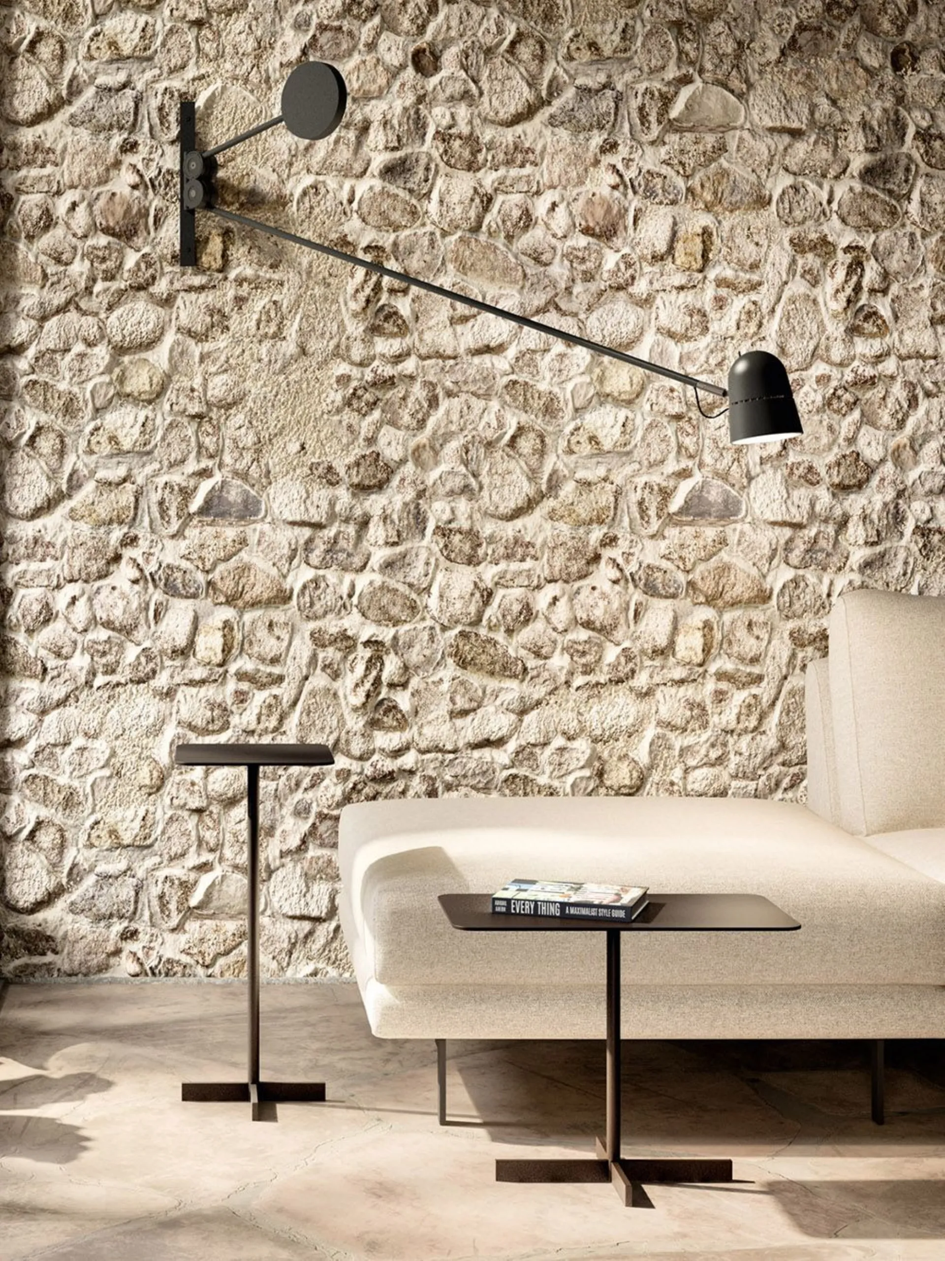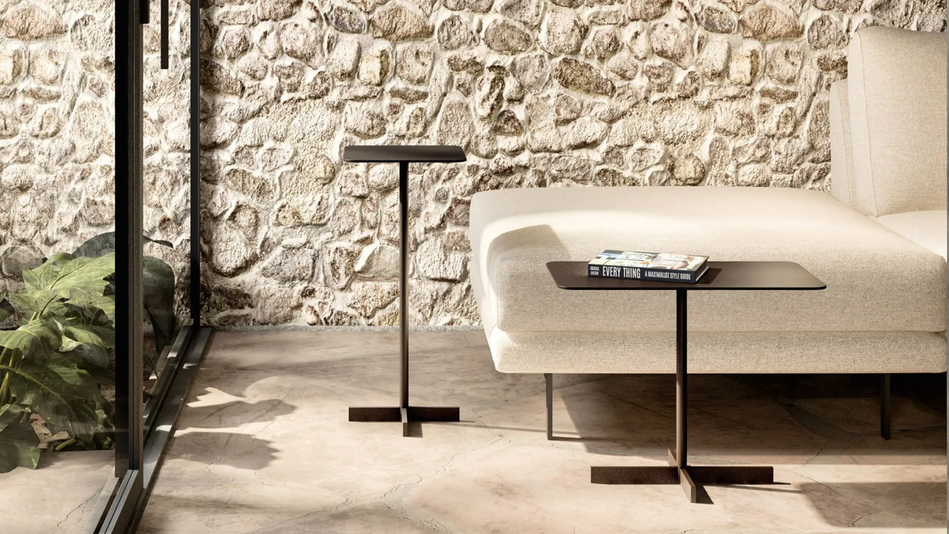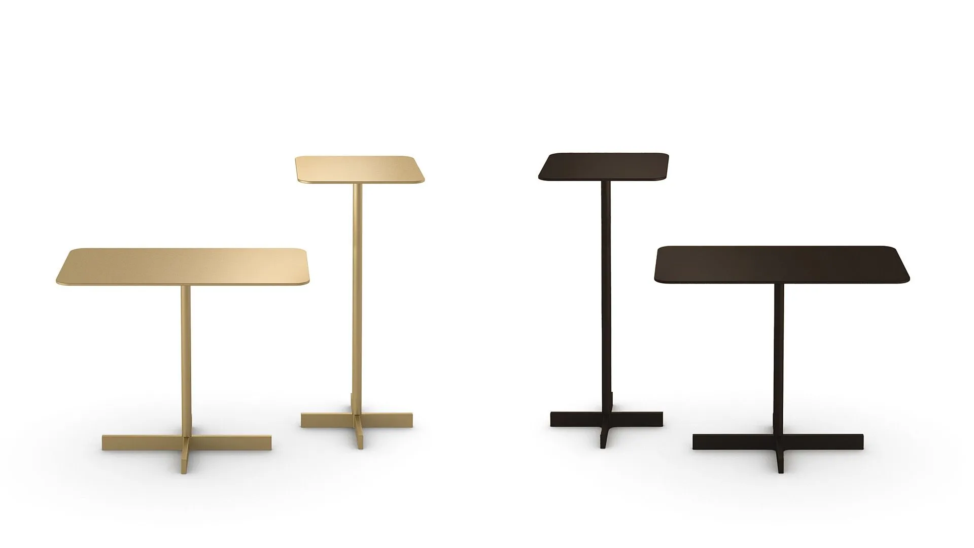 Linee minimali scolpiscono il tavolino servetto Nolan, disponibile in due formati e con altezze diverse.