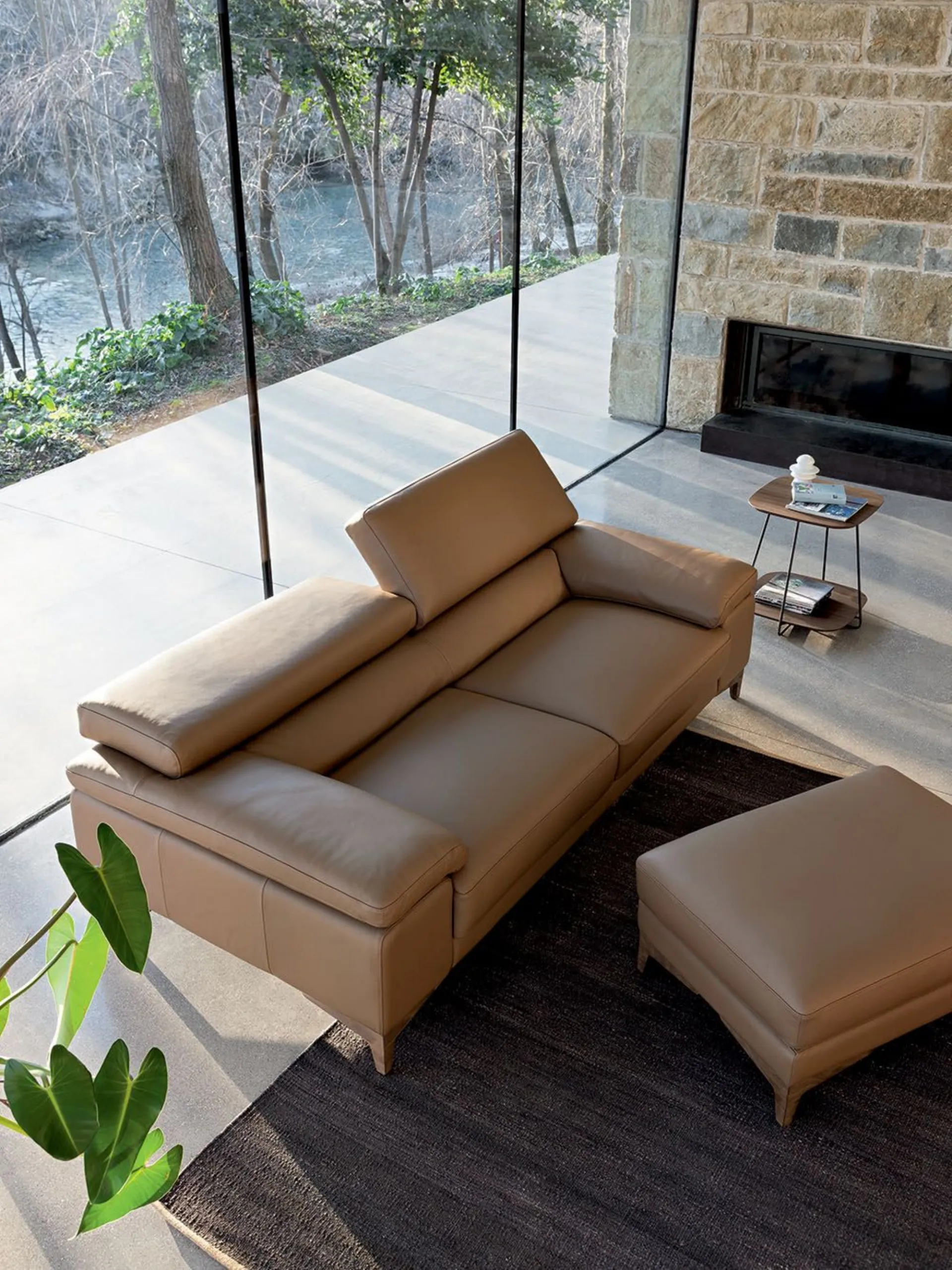Il design della struttura rialzata, alleggerisce le forme del divano, rendendolo immediatamente riconoscibile e molto attuale.Il bracciolo è costituito da una struttura squadrata su cui è stato posizionato un morbido e avvolgente cuscino, mentre lo schienale, quando abbassato, dona una linea sofisticata ideale per le situazioni più formali.