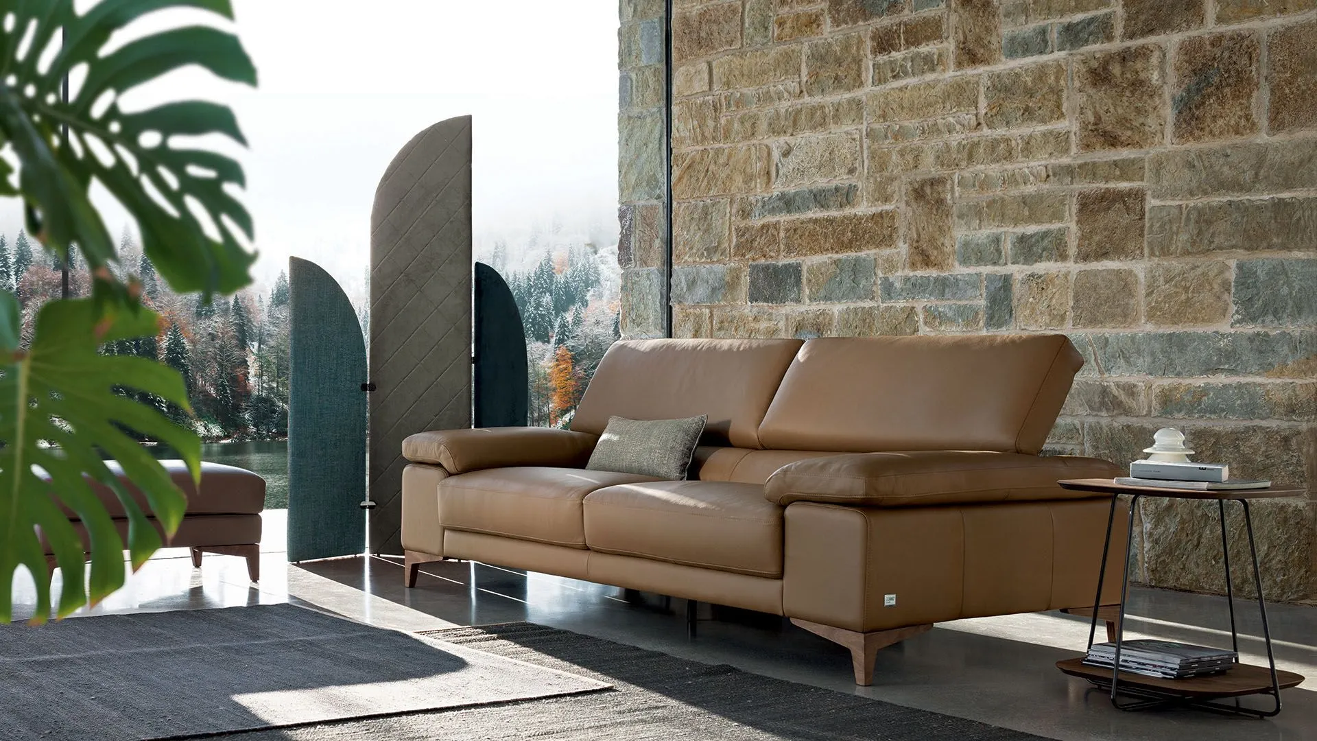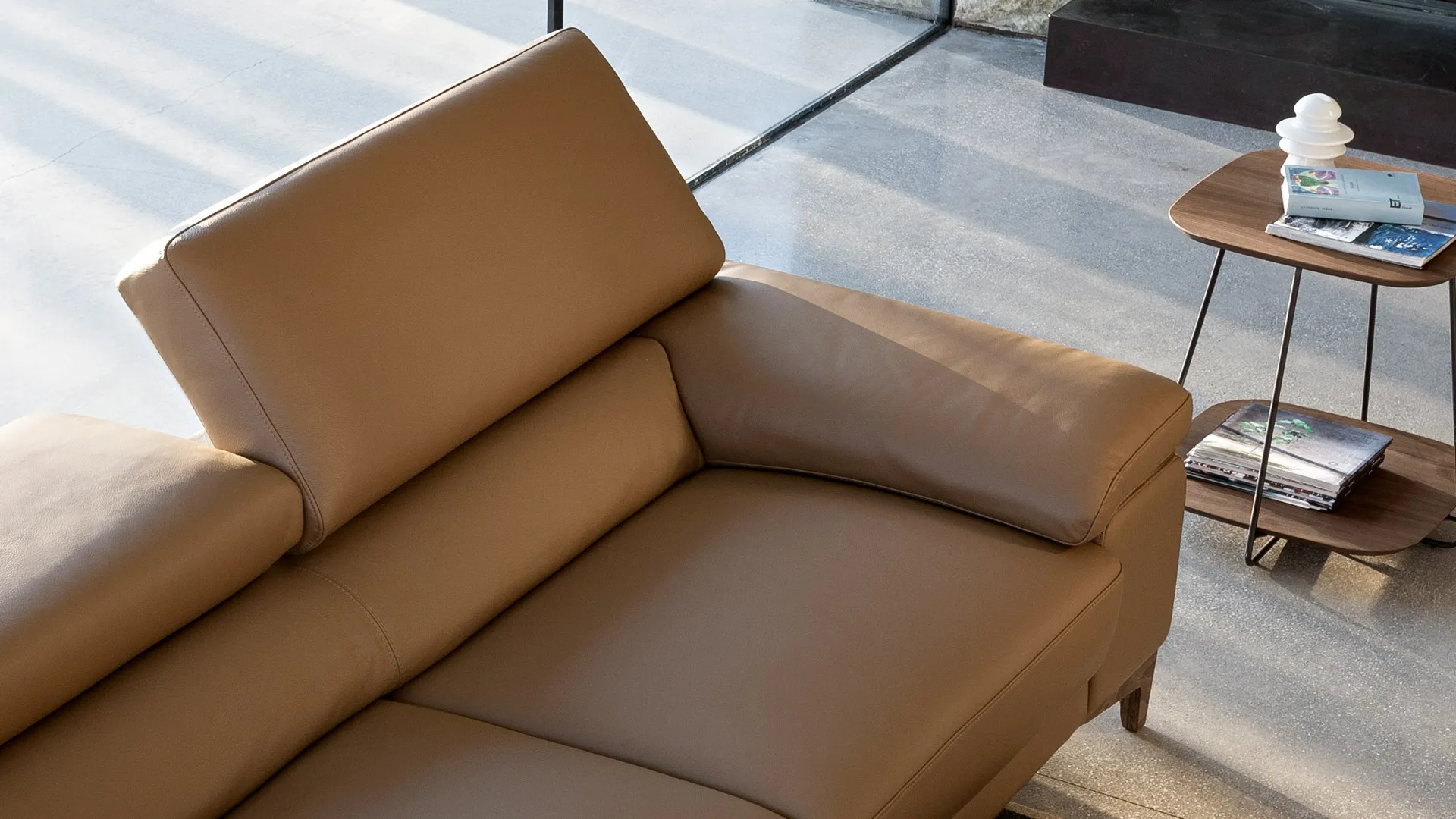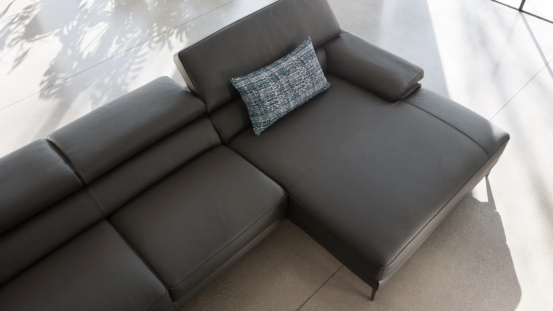 Le forme ampie dello schienale rialzabile, unite alla morbida consistenza delle imbottiture, rendono il divano confortevole e molto accogliente.