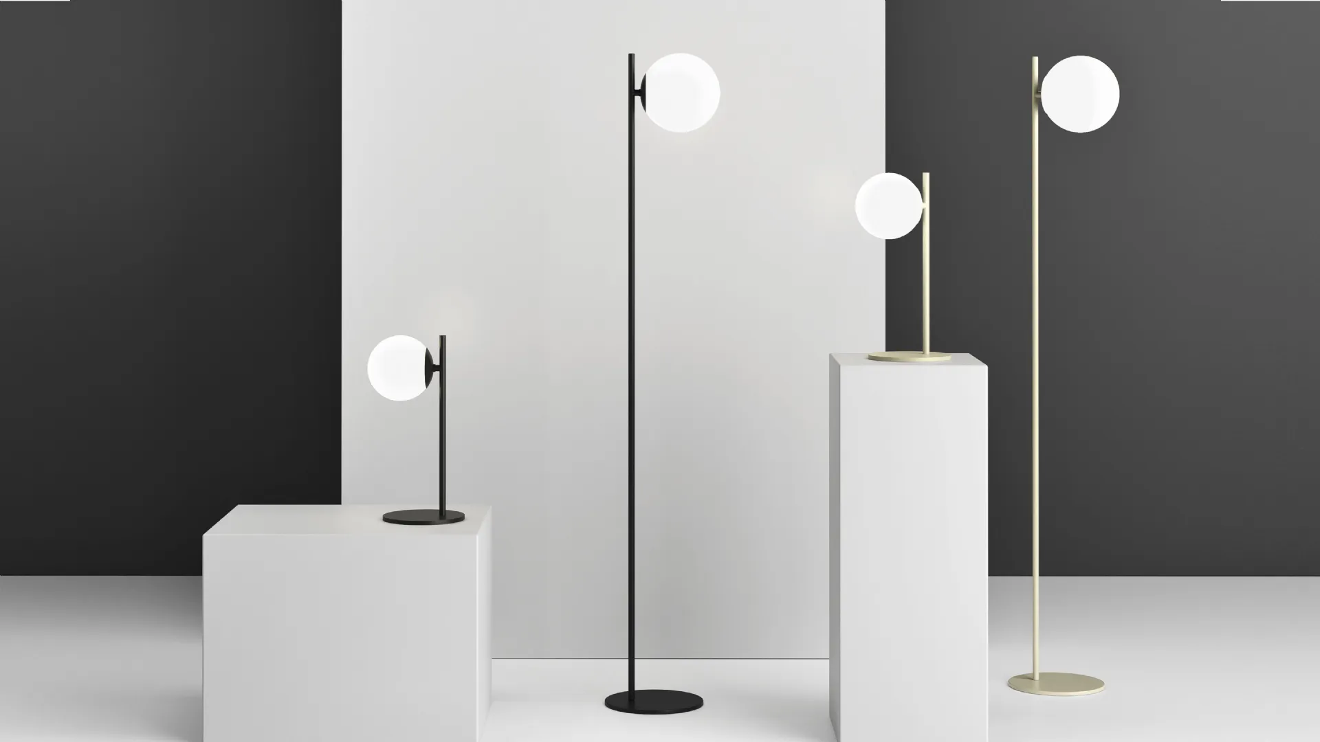La collezione Regan è composta da una versione piantana da terra e una lampada da tavolo.