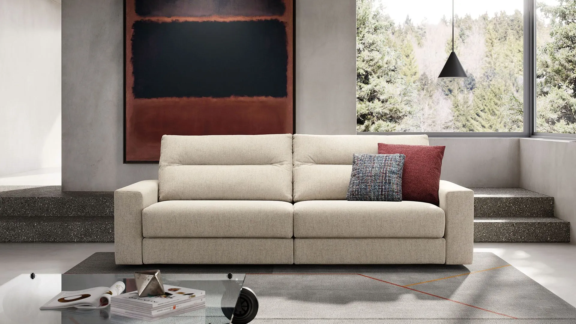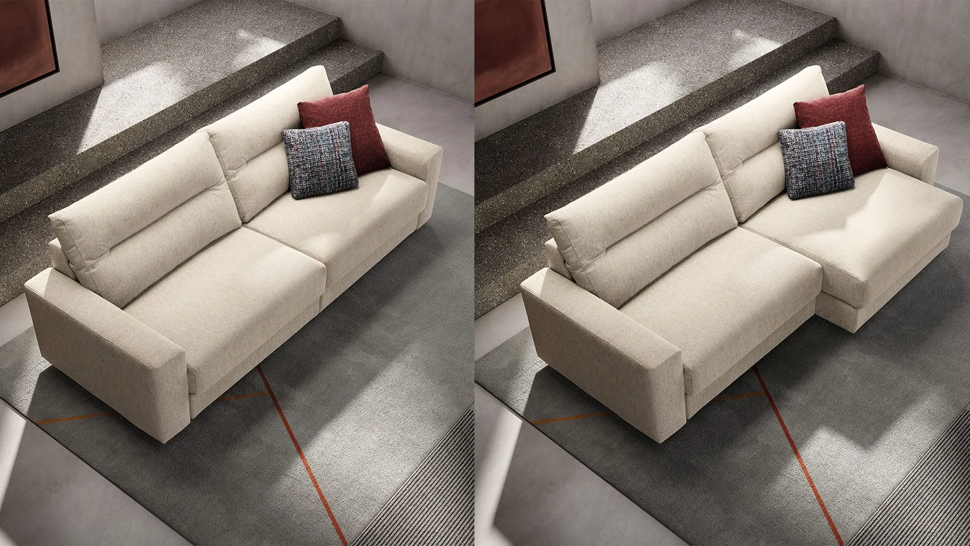 Samir è un divano con caratteristiche poliedriche associate ad un’ottima comodità, questo grazie alle sedute che si estraggono e avanzano a piacimento fino a 26 cm, permettendo di creare infinite soluzioni per vivere il proprio relax nella posizione ideale.
