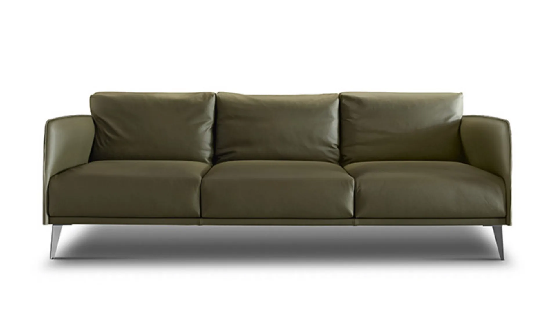 I piedi in acciaio, dalla forma affusolata e la base sollevata da terra alleggeriscono le forme del divano. I cuscini hanno uno stile contemporaneo e le imbottiture di seduta in poliuretano insieme allo schienale in misto piuma, garantiscono un sostegno ideale.Il rivestimento è sfoderabile in tessuto, microfibra o ecopelle, in pelle non è sfoderabile.