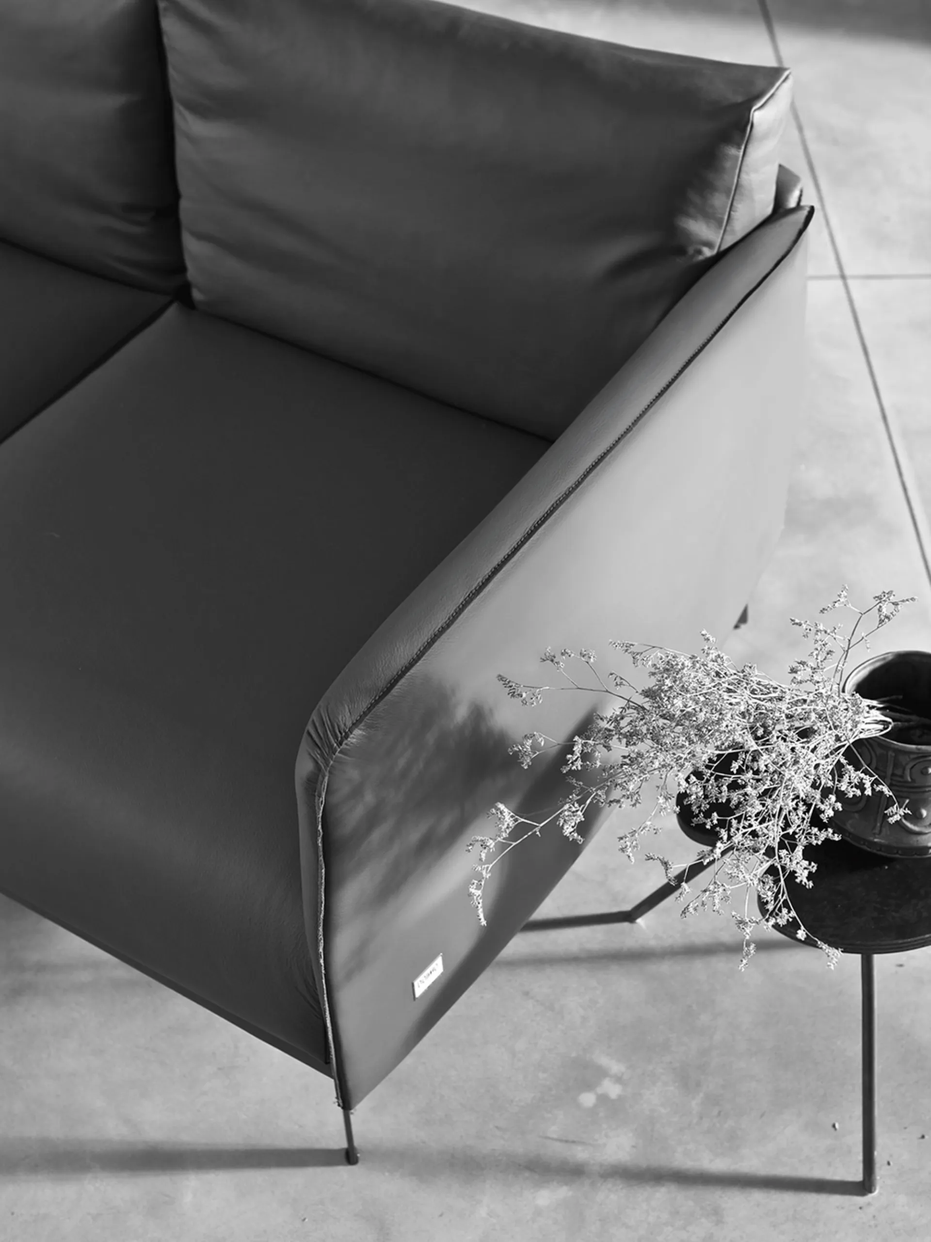 Il design originale si contraddistingue per il profilo sinuoso dei braccioli, sottili e raffinati allo stesso tempo. Un elogio allo stile dei divani di epoche passate.