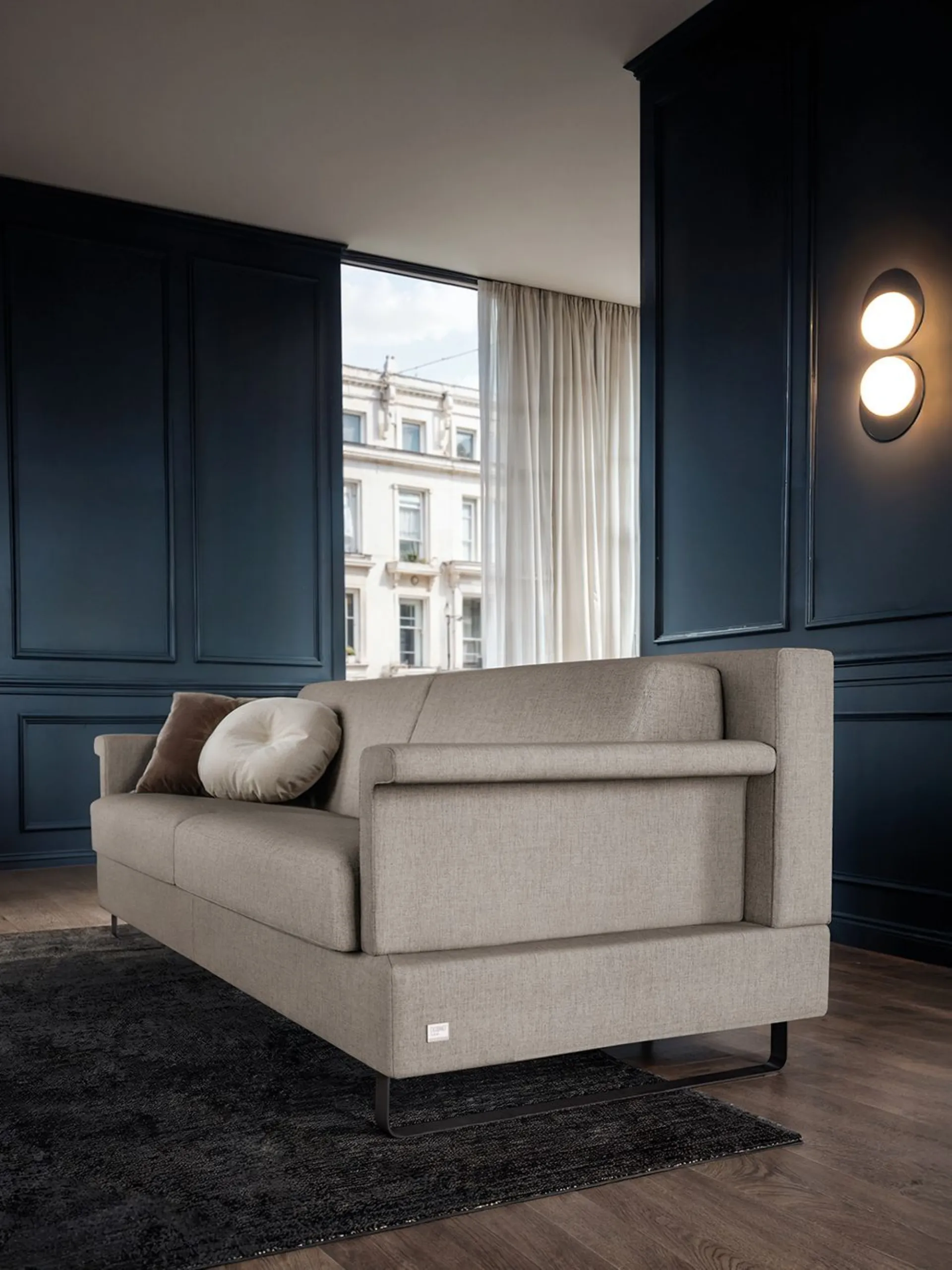 Tais rappresenta il perfetto equilibrio tra stile contemporaneo ed eleganza funzionale. Con il suo design esclusivo, si distingue per linee decise e moderne, capaci di valorizzare ogni ambiente. La struttura rialzata da terra, sostenuta da raffinati piedini in metallo, non solo conferisce leggerezza al divano, ma garantisce anche praticità e semplicità nella pulizia quotidiana. I dettagli curati, come le proporzioni armoniose e la qualità dei materiali, rendono Tais una proposta ideale per chi cerca un divano letto che unisca estetica e comfort.
