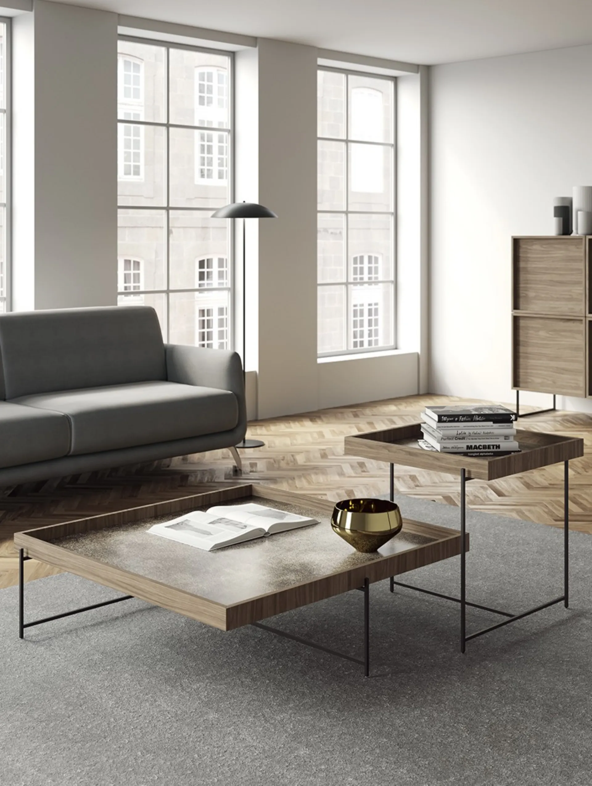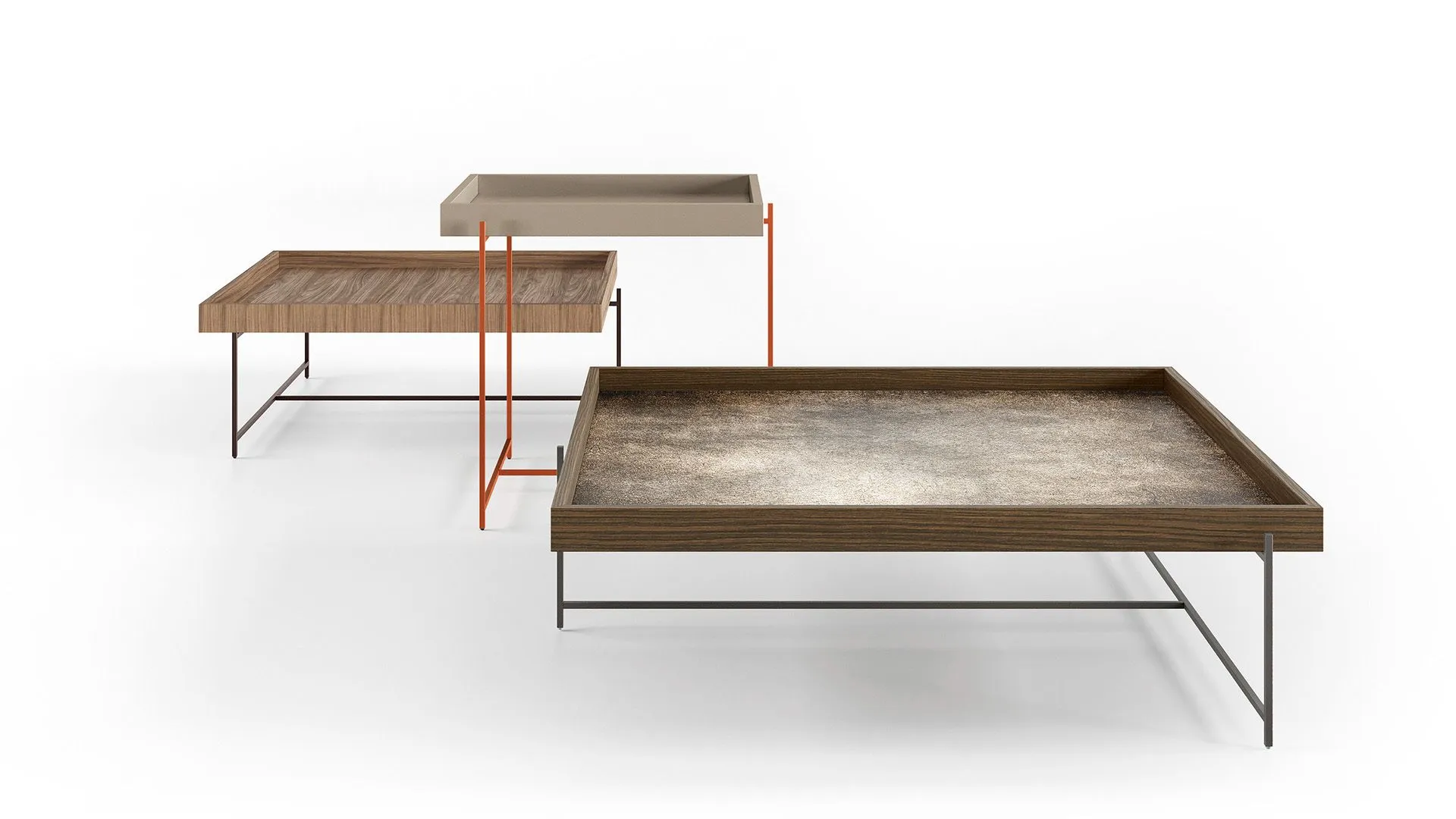 I tavolini Tery sono caratterizzati dalle linee minimali della struttura realizzata in metallo veriniciato bronzo vintage, disponibile anche nei colori laccati a campionario.