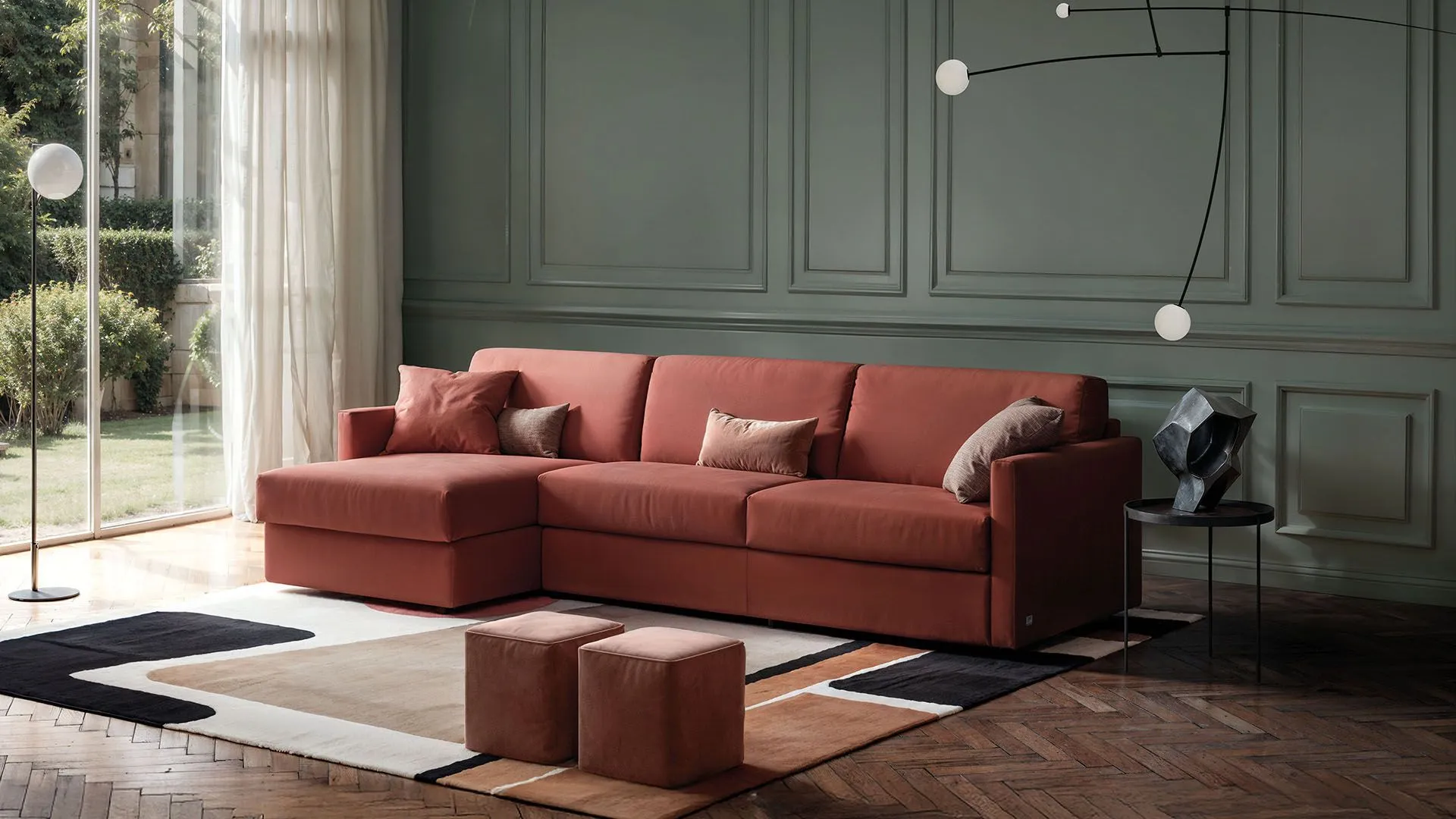 Il divano letto Trent si distingue per il suo design essenziale, capace di integrarsi con eleganza in qualsiasi ambiente. Disponibile anche nella configurazione componibile con penisola, che offre un pratico vano contenitore ideale per organizzare plaid, cuscini e tutto ciò che serve per il tuo relax. Grazie alla sua trasformazione semplice e intuitiva, Trent unisce comfort e versatilità, garantendo uno stile impeccabile sia nella modalità divano che letto. La soluzione ideale per chi cerca funzionalità senza rinunciare al gusto.